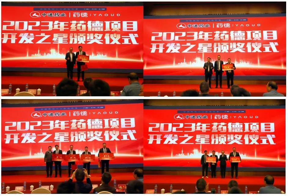 中進(jìn)市場(chǎng)部部長(zhǎng)劉永權(quán)宣布《2023年藥德項(xiàng)目開發(fā)之星TOP前三名》,盛邀蘇州華瓴科技有限公司發(fā)展中心總裁盧恩勝、蘇州華瓴科技有限公司發(fā)展中心常務(wù)副總裁孟維君、中進(jìn)人力資源部部長(zhǎng)胡耀萍分別為獲得”藥德項(xiàng)目開發(fā)之星”第一名、第二名、并列第三名獲獎(jiǎng)省區(qū)頒獎(jiǎng),現(xiàn)場(chǎng)藥德服務(wù)商也為獲獎(jiǎng)省區(qū)送上特殊禮品,獲獎(jiǎng)的優(yōu)秀省區(qū)代表分別作了熱情洋溢的開發(fā)經(jīng)驗(yàn)分享。