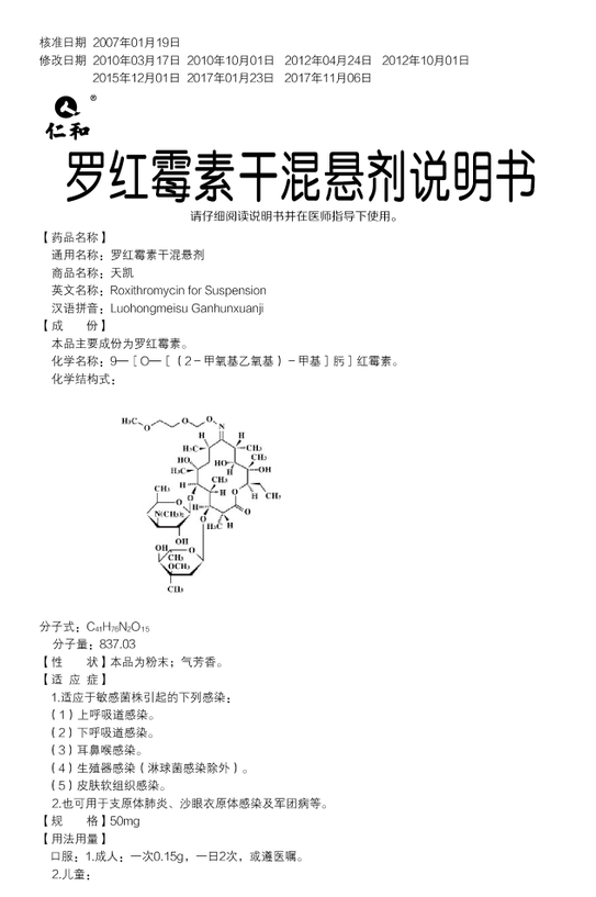 1.適應于敏感菌株引起的下列感染: (1)上呼吸道感染。 (2)下呼吸道感染。 (3)耳鼻喉感染。 (4)生殖器感染(淋球菌感染除外)。 (5)皮膚軟組織感染。 2.也可用于支原體肺炎、沙眼衣原體感染及軍團病等。