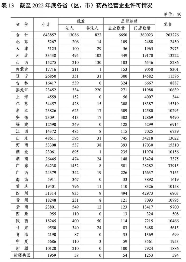 4月19日,國家藥品監督管理局發布了《藥品監督管理統計年度數據(2022年)》(下稱《年報》),對2022年全國藥品經營行業的發展狀況進行了詳細的統計和分析。