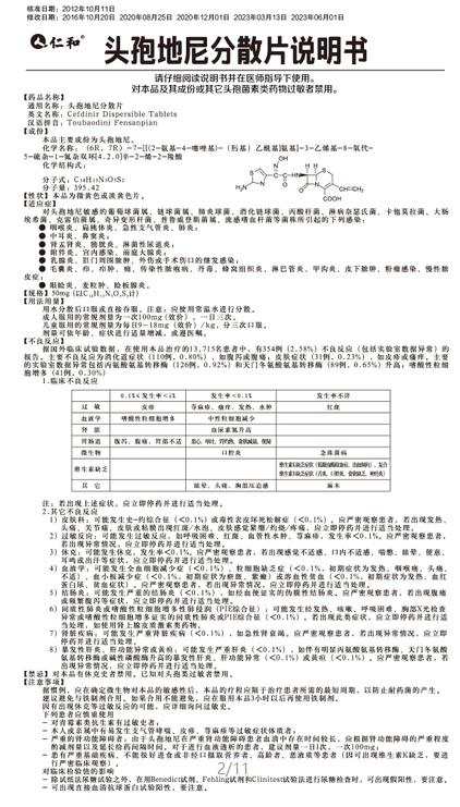 頭孢地尼分散片(50mg)