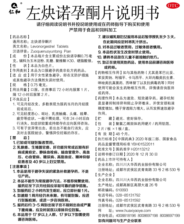 左炔諾孕酮片2片